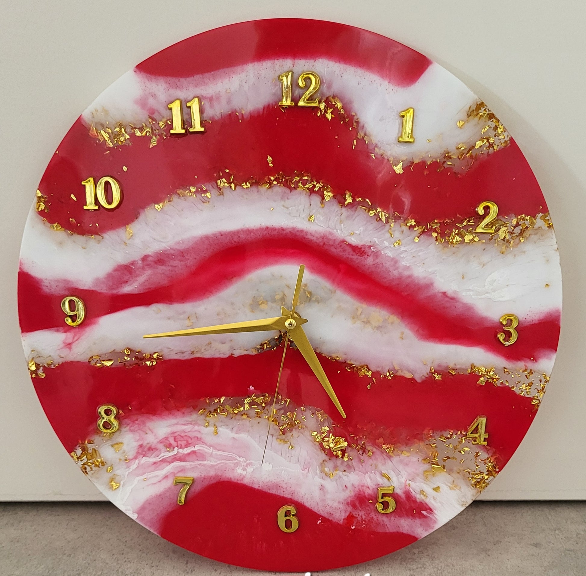 Edle Wanduhr in rot, weiss und Gold. Durchmesser 37cm
